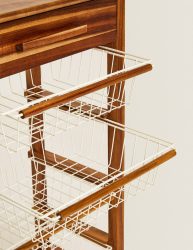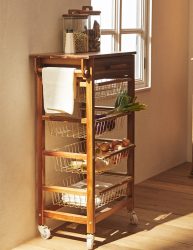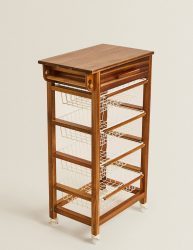 این واحد ذخیره‌سازی معمولاً از چهار سطح یا پله تشکیل شده است که به طور متناوب از موادی مانند چوب و فلز استفاده می‌شود. این سازه اغلب ترکیبی از قفسه‌های چوبی محکم و تکیه‌گاه‌ها یا قاب‌های فلزی را در خود جای می‌دهد. قفسه‌های چوبی فضای کافی برای ذخیره‌سازی فراهم می‌کنند، در حالی که چارچوب فلزی پشتیبانی ساختاری و جذابیت بصری ارائه می‌دهد. طراحی می‌تواند متفاوت باشد، عناصر چوب و فلز مکمل یکدیگر هستند تا یک واحد هماهنگ و کاربردی ایجاد کنند. طراحی چند طبقه امکان سازماندهی و نمایش مؤثر اقلام مختلف را فراهم می‌کند. هر سطح بستری برای چیدمان و نمایش اقلامی مانند کتاب، دکور، گیاهان یا سطل‌های ذخیره‌سازی فراهم می‌کند که هم کارایی و هم جذابیت زیبایی‌شناختی را ارائه می‌دهد. این واحدها همه‌کاره و مناسب برای اتاق‌ها و اهداف مختلف هستند. می‌توان از آنها در اتاق‌های نشیمن برای نمایش قطعات تزئینی، در دفاتر خانگی برای سازماندهی کتاب‌ها و اسناد یا در آشپزخانه‌ها برای نگهداری شیشه‌ها یا نمایش ظروف پخت و پز استفاده کرد. ترکیب عناصر چوب و فلز ظاهری مدرن و صنعتی به واحد ذخیره‌سازی می‌بخشد و آن را به یک افزودنی شیک به طراحی‌های داخلی مدرن یا التقاطی تبدیل می‌کند.